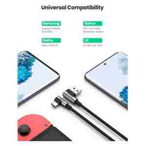 Kabel UGREEN USB v USB-C 90-stopinjski kabel za hitro polnjenje, združljiv z iPhone 15/15 Plus/15 Pro/15 Pro Max/Samsung Galaxy S10/S10+/Pixel 7/6a/LG G8/G7/Pixel/Switch itd.