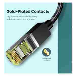 Ethernetni kabel UGREEN je izdelan iz čiste bakrene žice 30 AWG, nižje impedance in manjše izgube z visoko zmogljivostjo. 8 kosov pozlačenih kontaktov se tesno prilega ethernetnemu kablu, kar zagotavlja hitrejšo in stabilnejšo internetno povezavo. Poleg tega obstajajo protiprašni pokrovčki, ki pomagajo ohranjati konektorje urejene in trpežne.