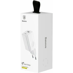 Hišni polnilec 100-240V – 1x USB-A (ž) 24W za mobilni telefon ali tablični računalnik Baseus QC3 – bel