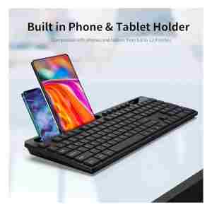 MARVO OFFICE KC411 je brezžični komplet tipkovnice in miške, ki ponuja izjemno udobje in funkcionalnost za vaše računalniške potrebe. Ta ergonomska tipkovnica združuje brezžično povezljivost s stojalom za telefon ali tablični računalnik, kar omogoča še večjo praktičnost in organiziranost na vašem delovnem mestu.