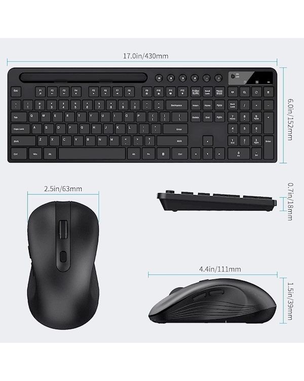 MARVO OFFICE KC411 je brezžični komplet tipkovnice in miške, ki ponuja izjemno udobje in funkcionalnost za vaše računalniške potrebe. Ta ergonomska tipkovnica združuje brezžično povezljivost s stojalom za telefon ali tablični računalnik, kar omogoča še večjo praktičnost in organiziranost na vašem delovnem mestu.