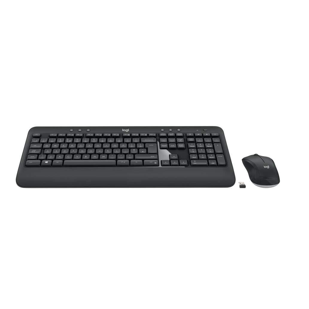 Logitech MK540 Advanced. Faktor oblike tipkovnice: polna velikost (100 %). Stil tipkovnice: ravna Tehnologija povezovanja: Brezžična, Vmesnik naprave: RF brezžični, Stikalo na tipkovnici: Membransko stikalo, Postavitev tipkovnice: QWERTZ. naslon za zapestje. Priporočena uporaba: univerzalna. Barva izdelka: Črna, Bela. priložena miška