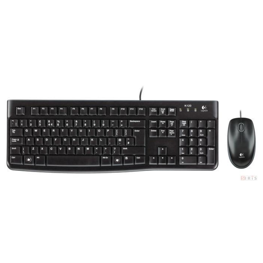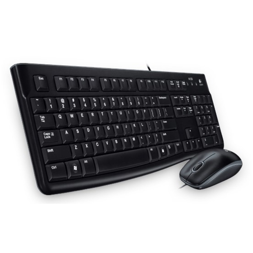 Logitech MK120. Faktor oblike tipkovnice: polna velikost (100 %). Stil tipkovnice: ravna Tehnologija povezovanja: Žična, Vmesnik naprave: USB, Postavitev tipkovnice: QWERTZ. Barva izdelka: Črna. priložena miška