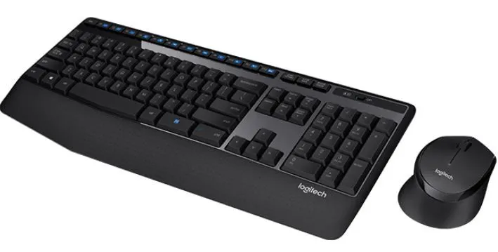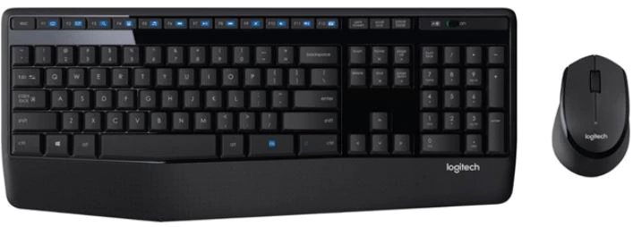 Logitech MK345. Faktor oblike tipkovnice: polna velikost (100 %). Stil tipkovnice: ravna Tehnologija povezovanja: Brezžična, Vmesnik naprave: Brezžična RF, Postavitev tipkovnice: QWERTY, Priporočena uporaba: Univerzalno. Barva izdelka: Črna. priložena miška