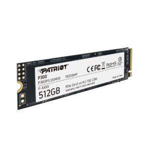SSD Patriot P300, 512GB, M.2, PCIe Gen3, hitrost branja do 1700 MB/s, pisanja do 1200 MB/s. Združljiv z Windows 7-10. Vzdržljivost 160TB.