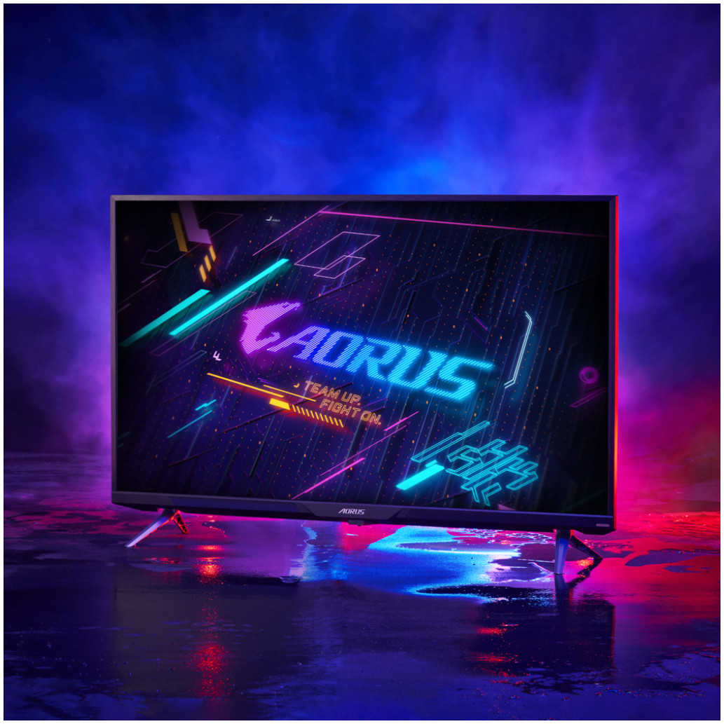 Gigabyte AORUS FO48U. Diagonala zaslona: 120,7 cm (47,5 palcev), ločljivost zaslona: 3840 x 2160 slikovnih pik, vrsta HD: 4K Ultra HD, tehnologija zaslona: OLED, odzivni čas: 1 ms, izvorno razmerje stranic: 16:9, vodoravni kot slike: 178° , kot slike , navpično: 178°. Vgrajeni zvočniki. Vgrajeno zvezdišče USB, nosilec VESA. Barva izdelka: Črna