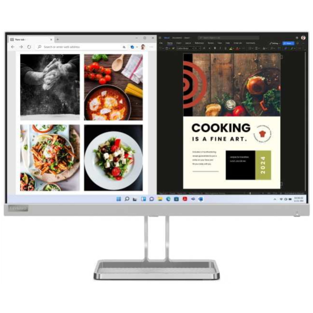 Lenovo L24i-40. Diagonala zaslona: 60,5 cm (23.8″), ločljivost zaslona: 1920 x 1080 slikovnih pik, tip HD: Full HD, tehnologija zaslona: LED, odzivni čas: 6 ms, izvorno razmerje stranic: 16:9, kot slike, vodoravno: 178°, kot slike, navpično: 178°. Vgrajeni zvočniki. nosilec VESA. Barva izdelka: siva.