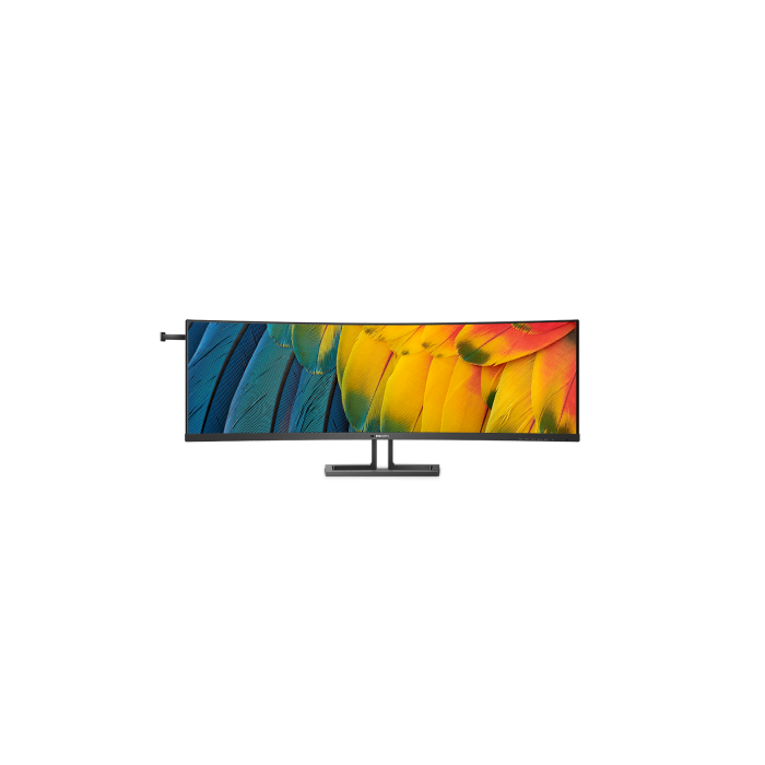 Philips 45B1U6900C je 44,5-palčni (113 cm) ukrivljen VA monitor z ločljivostjo Dual QHD (5120 × 1440) in frekvenco osveževanja 75 Hz, ki ponuja izjemno široko delovno površino in bogate barve. Opremljen je z USB-C priklopom z napajanjem do 100 W (PD 3.0), KVM-stikalom za enostavno upravljanje več naprav ter zvočniki (2 × 5 W). Ergonomsko stojalo omogoča nastavitev višine, vrtenje in nagib, ukrivljenost 1500R pa zagotavlja popolno vključenost v vsebino.