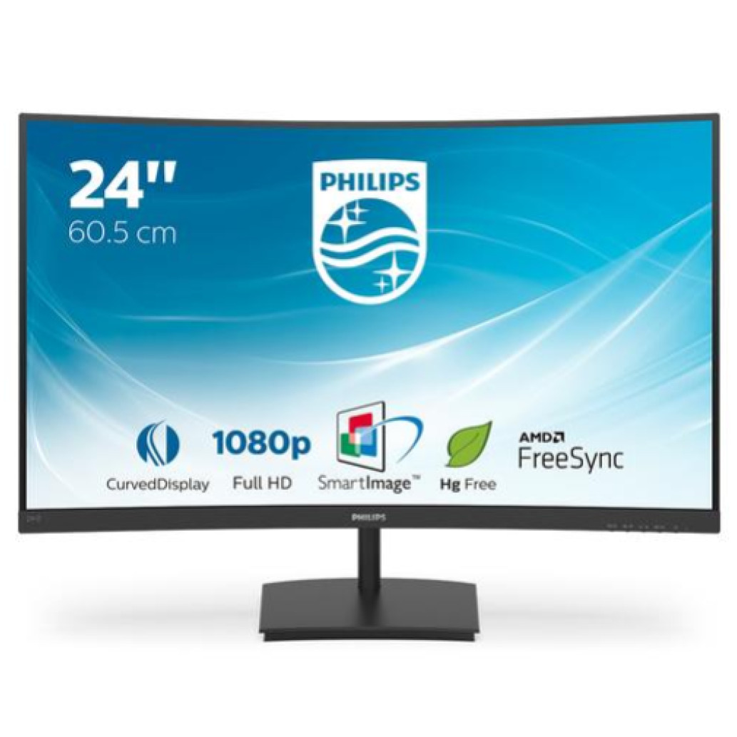 59,9 cm (24″) zaslon ukrivljene E-Line ponuja še posebej impresivno izkušnjo v elegantnem dizajnu. Doživite ostre slike Full HD in brezhibne akcijske prizore s tehnologijo AMD FreeSync.