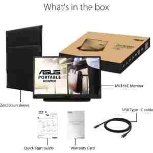 ASUS ZenScreen MB166C. Diagonala zaslona: 39,6 cm (15,6 palca), ločljivost zaslona: 1920 x 1080 slikovnih pik, vrsta HD: Full HD, tehnologija zaslona: LED, odzivni čas: 5 ms, izvorno razmerje stranic: 16:9, vidni kot, vodoravno: 178° , kot gledanja, navpično: 178°. Integrirano zvezdišče USB. Barva izdelka: Črna