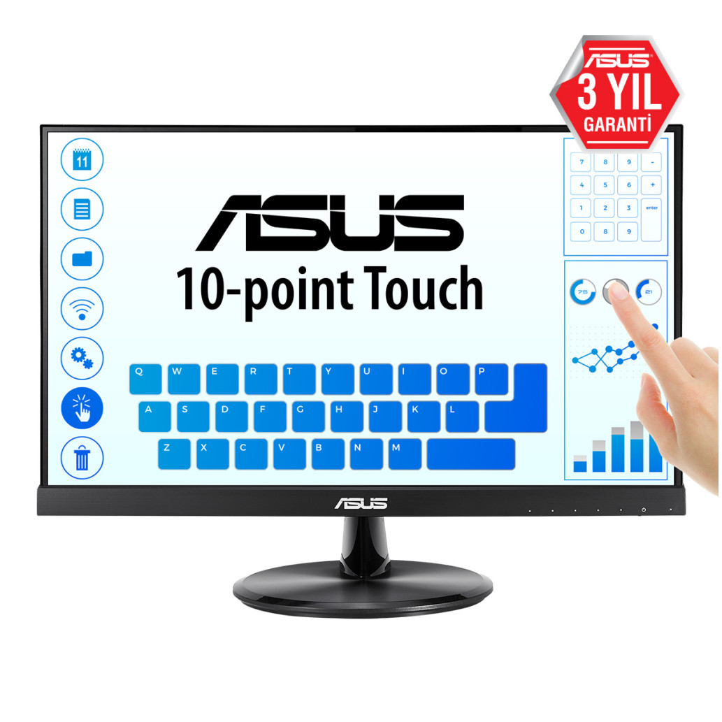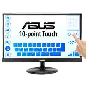 ASUS VT229H. Diagonala zaslona: 54,6 cm (21,5 palca), ločljivost zaslona: 1920 x 1080 slikovnih pik, vrsta HD: Full HD, površina zaslona: sijajna, odzivni čas: 5 ms, izvorno razmerje stranic: 16:9, vidni kot, vodoravno: 178° , Zorni kot, navpični: 178 °. Vgrajeni zvočniki. Integrirano zvezdišče USB. VESA nosilec. Barva izdelka: Črna