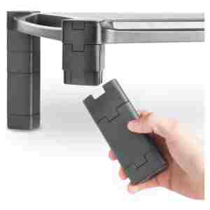Modularno oblikovan; stojne noge delujejo kot večdelni stebrički, tako da je višina popolnoma nastavljiva vašim željam. Omogoča bolj ergonomičen pristop in zagotavlja, da je vaš monitor pravilno poravnan z vašim očesnim nivojem – povečuje udobje in zmanjša morebitne napetosti na vratu in hrbtu.