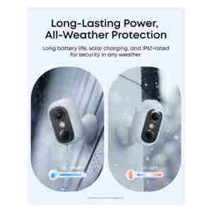 Brezžična in polnilna kamera podpira priklop na sončni panel eufy za neprekinjeno zaščito skozi vse leto.