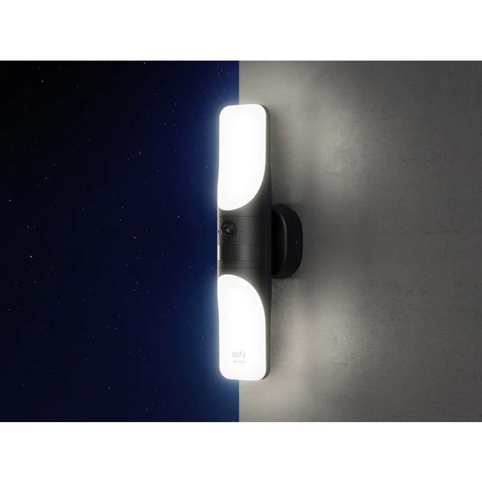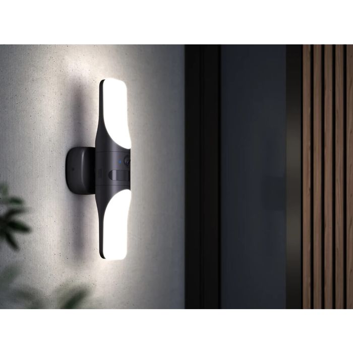 brezhibno integrirana kamera in luč spremljata zunanjost vašega doma in osvetljujeta prostore do velikosti 9 m s 1200 lumni svetlosti – kar vam daje močnejši občutek varnosti v najtemnejših nočeh. Izberite tudi želene ravni svetlosti z možnostjo zatemnitve. - Oglejte si 2K HD v velikem vidnem polju:
