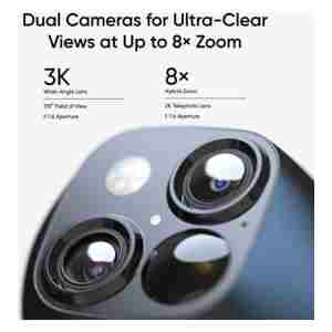 - Izboljšana jasnost dvojne kamere na 15 m: posnemite vsak dogodek, ki se zgodi v vašem domu, v izjemno jasni ločljivosti 3K. Natančno si oglejte, kdo se približuje vašemu domu z 8× povečavo.