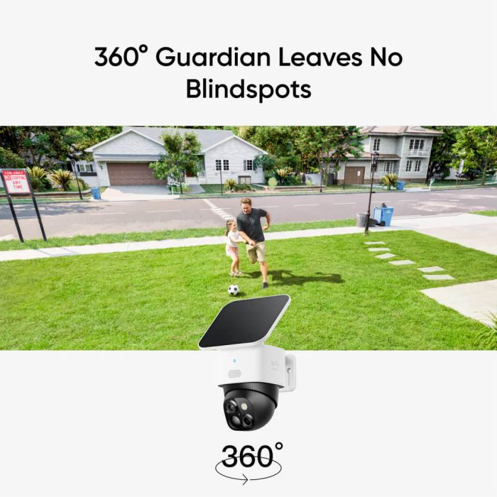 - 360° stopinjski varuh, brez mrtvih kotov: poslovite se od mrtvih kotov s popolno pokritostjo doma. Uživajte v 360° nadzoru, preverite svojo verando, spremljajte svoje dvorišče in z lahkoto pazite na dovoz.