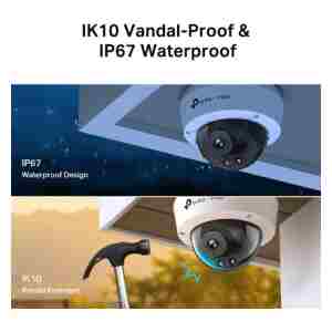 IK10 Odporen proti vandalizmu & IP67 Vodoodporen: Ta kupolasta kamera VIGI z odpornim proti vandalizmu robustnim ohišjem in vodotesno zasnovo je izdelana tako, da vzdrži vandalizem in težka okolja z dežjem in prahom za stalno varnost kjer koli in kadarkoli.