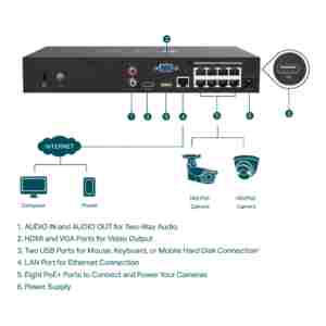 Video izhod 4K HDMI in zmogljivost dekodiranja 16 MP: Ostra ločljivost slike do 8 MP in 8-kanalni zaslon zagotavljata, da zajamete vse podrobnosti iz vseh kotov.