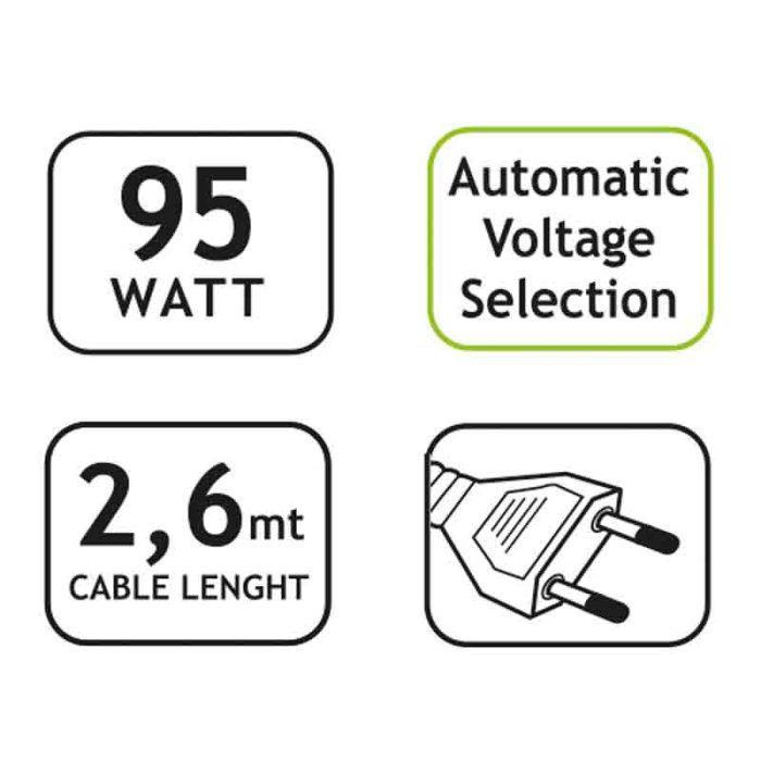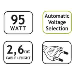 Univerzalni napajalnik 95W Together On za dom / pisarno črna barva 230V AC 50/60Hz.