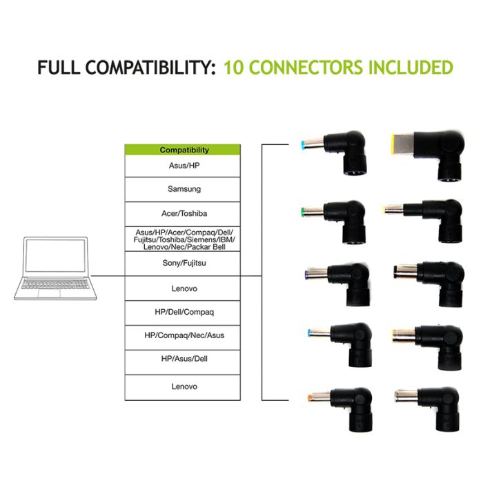 Združljiv z glavnimi znamkami in modeli prenosnikov, ultraknjižnikov, tabličnih računalnikov.