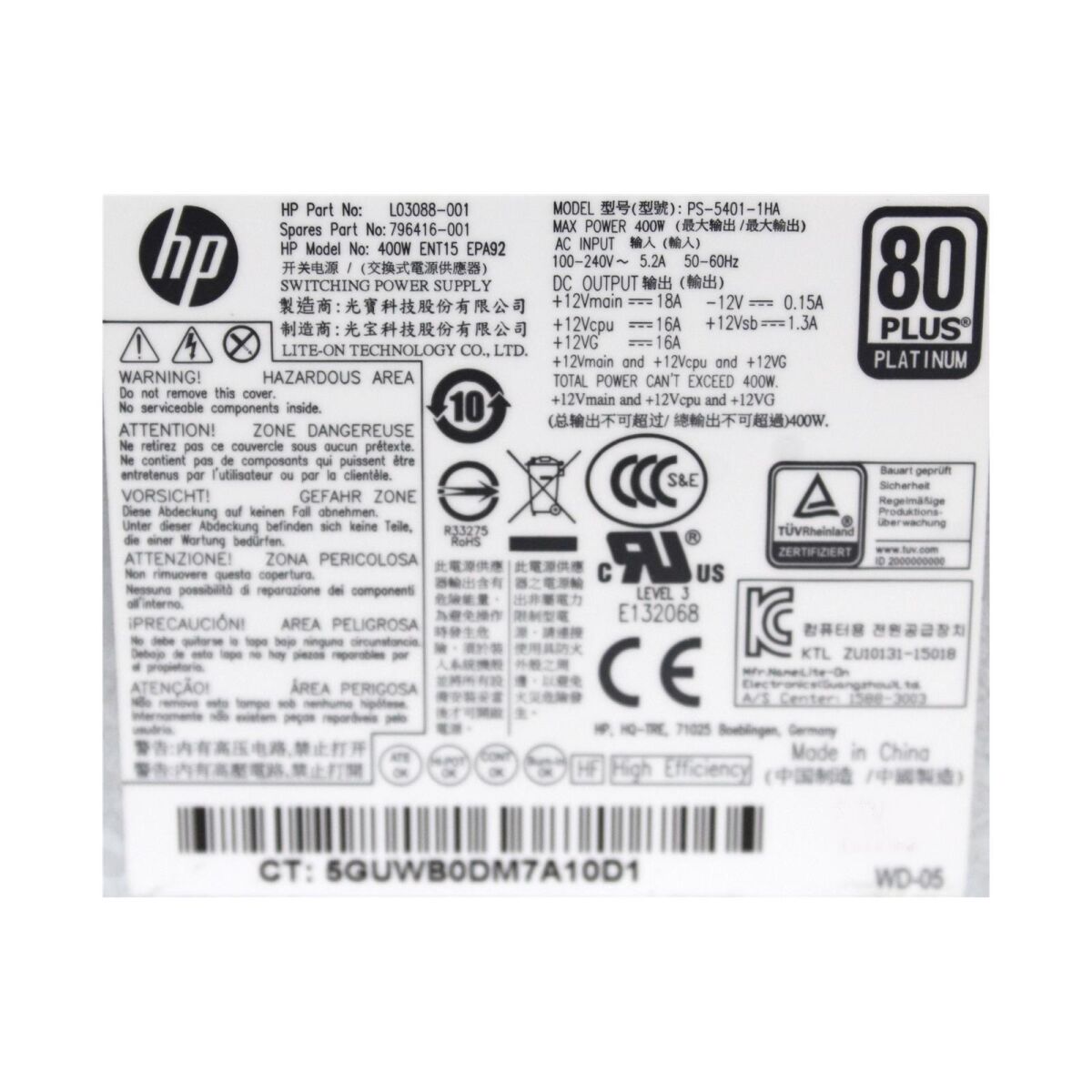 HP Lite-On PS-5401-1HA PN: L03088-00 400 W 80+ #325312Availability: Na zalogi