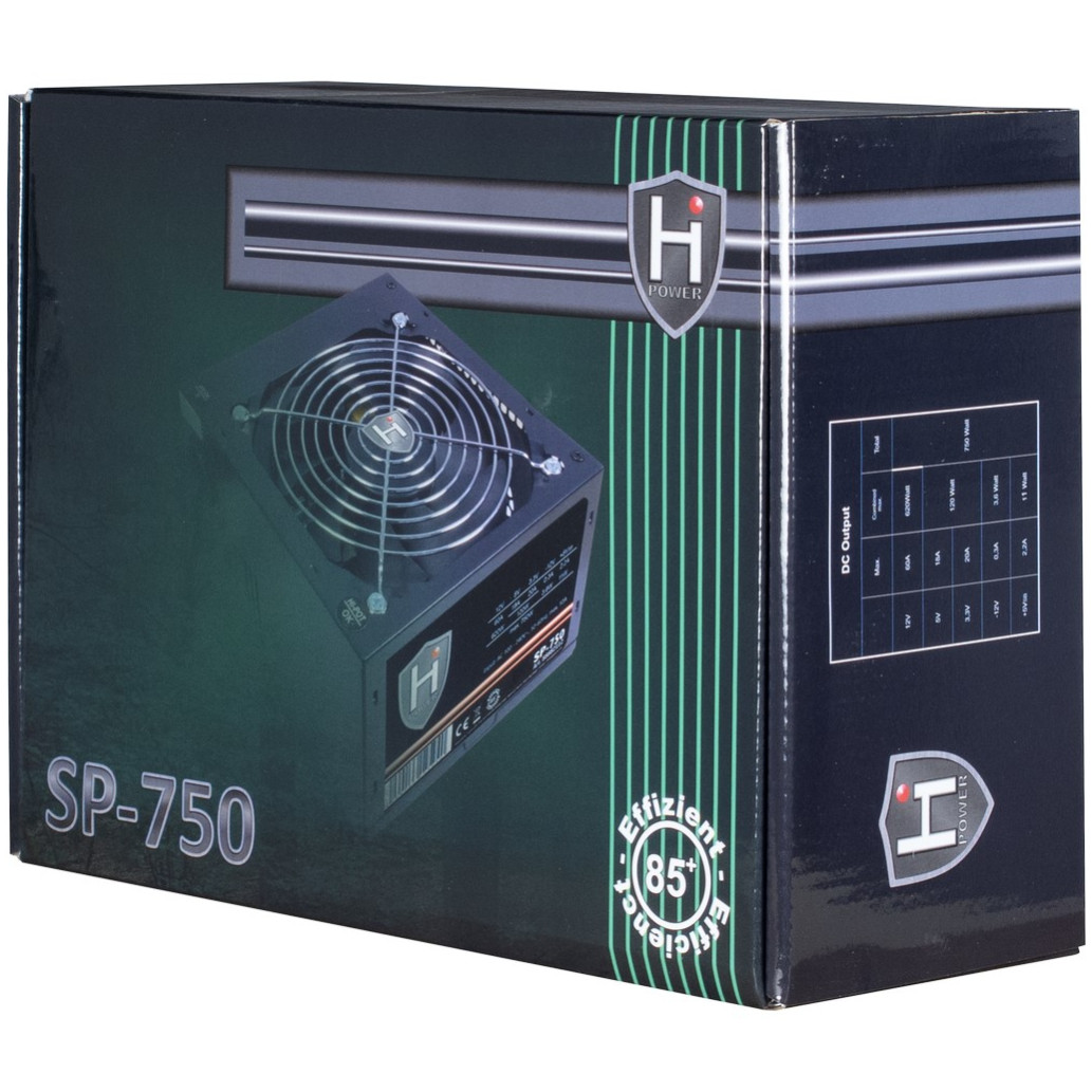Inter Tech HIPOWER SP-750. Skupna moč: 750 W, AC vhodna napetost: 100 – 240 V, AC vhodna frekvenca: 50/60 Hz Priključek za matično ploščo: 20+4 pin ATX, dolžina napajalnega kabla matične plošče: 50 cm, dolžina napajalnega kabla PCI Express: 50 cm . Namen: PC, Faktor oblike napajalne enote (PSU): ATX, Raven hrupa: 35 dB. Barva izdelka: Črna, Hlajenje: Aktivno, Premer ventilatorja: 14 cm. Širina: 150 mm Globina: 160 mm Višina: 86 mm