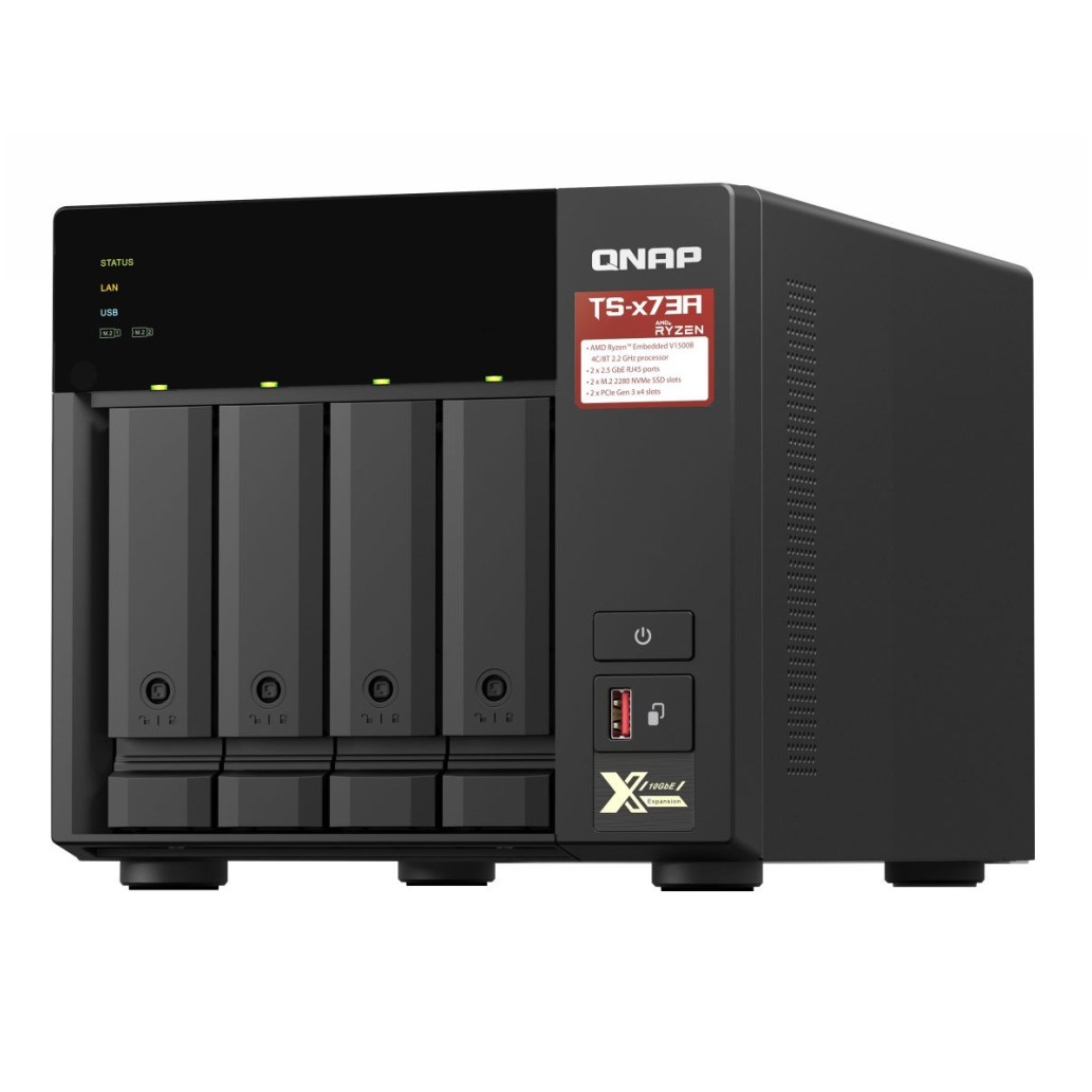 NAS TS-473A z AMD Ryzen quad-core 2.2 GHz procesorjem in 2.5GbE mrežo, podpira razširitev z M.2 NVMe SSD-jem