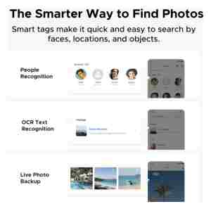Fotografije razvršča po obrazih, prizorih in lokacijah, odstranjuje podvojene posnetke ter ustvarja personalizirane albume rasti otrok. Omogoča enostavno deljenje z družino prek QR kode ali povezave.