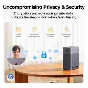 Podatki so varno shranjeni lokalno. Napredna enkripcija, požarni zid in dvofaktorska avtentikacija učinkovito ščitijo datoteke pred nepooblaščenim dostopom. Tudi UGREEN nima dostopa do vaših zasebnih podatkov. Naprava ima certifikat TRUSTe ter certifikat TÜV SÜD za skladnost s standardom ETSI EN 303 645.