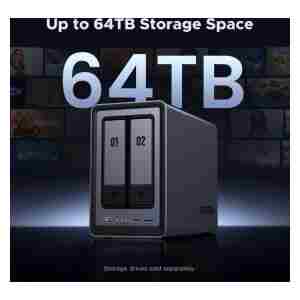 2 reži SATA podpirata do 24 TB vsakega diska, namestite pa lahko tudi dva dodatna kompaktna pogona M.2 NVMe SSD do 8 TB vsakega (za dodatno hitro shranjevanje SSD predpomnjenja). Z vsemi uporabljenimi režami je največja zmogljivost velikih 64 TB.