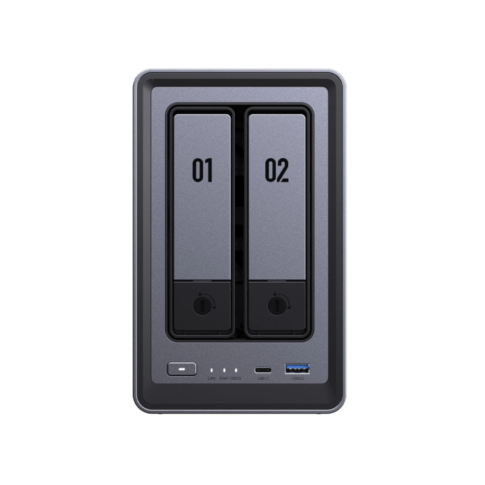 2 reži SATA podpirata do 24 TB vsakega diska, namestite pa lahko tudi dva dodatna kompaktna pogona M.2 NVMe SSD do 8 TB vsakega (za dodatno hitro shranjevanje SSD predpomnjenja). Z vsemi uporabljenimi režami je največja zmogljivost velikih 64 TB.