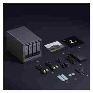 štiri ležišča SATA podpirajo do 24 TB vsakega, namestite pa lahko tudi dva dodatna kompaktna pogona M.2 NVMe SSD do 8 TB vsakega (za predpomnjenje SSD ali dodatno hitro shranjevanje). Z vsemi uporabljenimi režami je največja zmogljivost resnično velikih 112 TB