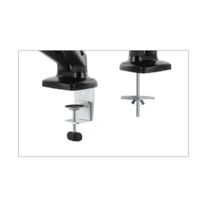 IB-MS304-T je namizni nosilec za dva monitorja do 32″, zasnovan za večjo prilagodljivost in urejen delovni prostor. Plinska vzmet omogoča gladko nastavitev višine, Smart Torque Adjust™ pa natančno prilagoditev teže monitorjev. Vgrajeno vodenje kablov poskrbi za urejen videz, možnost montaže s spono ali prebojem pa zagotavlja stabilno in preprosto namestitev.