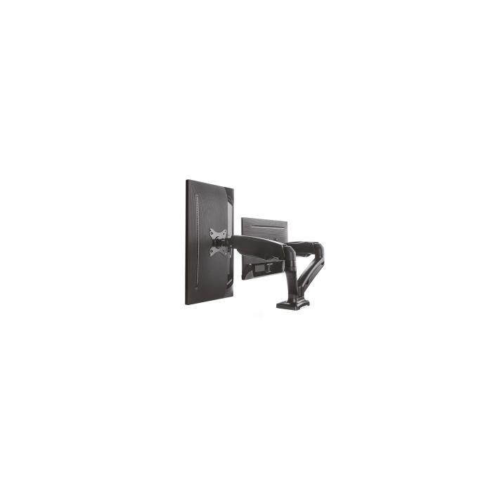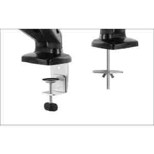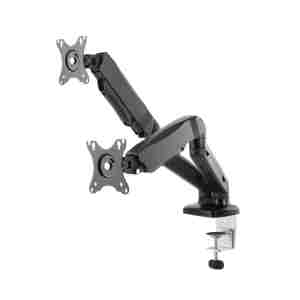 IB-MS304-T je namizni nosilec za dva monitorja do 32″, zasnovan za večjo prilagodljivost in urejen delovni prostor. Plinska vzmet omogoča gladko nastavitev višine, Smart Torque Adjust™ pa natančno prilagoditev teže monitorjev. Vgrajeno vodenje kablov poskrbi za urejen videz, možnost montaže s spono ali prebojem pa zagotavlja stabilno in preprosto namestitev.