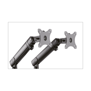 IB-MS314-T je dvojno namizno držalo za monitorje do 32″, zasnovano za ergonomsko ureditev delovnega prostora. Omogoča zgornjo montažo mize, enostavno vstavljanje roke ter natančno prilagoditev teže monitorjev s pomočjo vgrajenega merilnika napetosti vzmeti. Plinsko podprta roka omogoča gladko vertikalno gibanje, integrirano upravljanje kablov pa skrbi za čist in organiziran izgled.