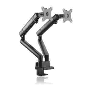Nosilec za dva monitorja do 32″ z montažo na rob mize.