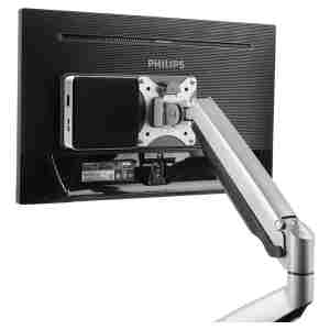 Običajno, ko namestite ročico za monitor, nosilec VESA na monitor ni več na voljo za kaj drugega. Z IB-MSA103-VM je zdaj mogoče namestiti Intel NUC in roko monitorja skupaj za en monitor.