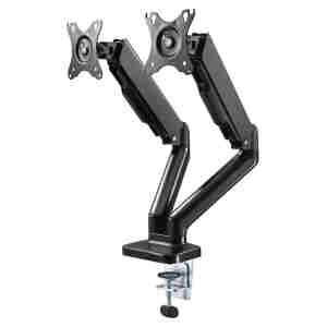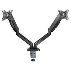 UVI DESK DVOJNI HITRO NASTAVLJIV NAMIZNI NOSILEC ZA MONITOR Eleganten, izjemno močan, stabilen in hitro nastavljiv UVI VESA dvojni namizni premium nosilec iz aluminija bo odpravil nered na vaši mizi. Vsaka roka vzdrži težo do 9 kilogramov in je primerna za monitorje velikosti od 17″ do 32″. Omogoča nagibanje in obračanje monitorja, nastavite jih lahko tudi vertikalno hkrati pa kabelska sponka na roki poskrbi za eleganten videz. Zaradi posebne zasnove roki omogočata hitro in enostavno prilagajanje pozicije monitorja v vse smeri. UVI VESA dvojni namizni premium nosilec za monitor je izdelan iz kakovostnih materialov in zagotavlja dolgo življenjsko dobo. Z njim boste dosegli večjo prilagodljivost in eleganco vašega delovnega prostora.
