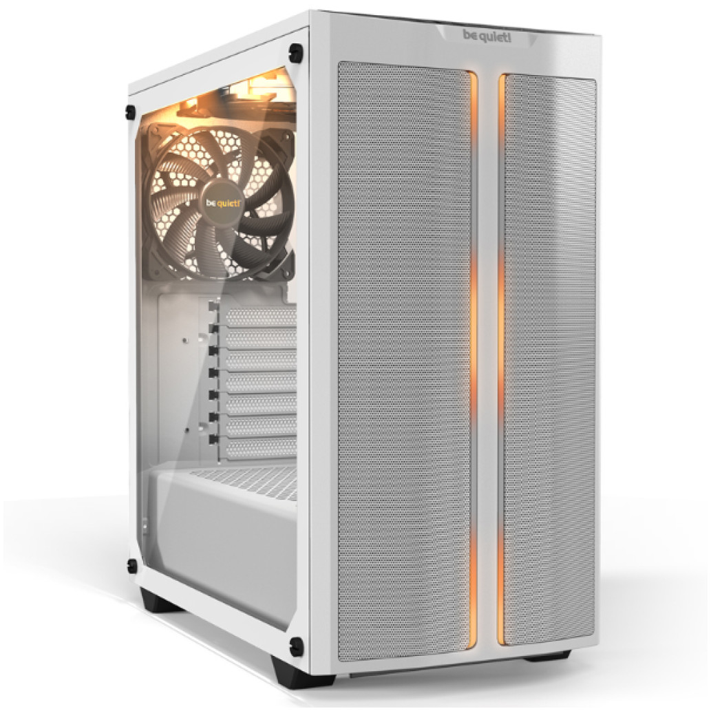 Bodi tiho! Pure Base 500DX. Faktor oblike: Namizni, Tip: PC, Barva izdelka: Bela. Postavitev napajalnika: Tla, Podprti faktorji oblike napajalnika: ATX, PS2. Vgrajeni ventilatorji (spredaj): 1x 140 mm, premer podprtih sprednjih ventilatorjev: 120.140 mm, opis podprtih sprednjih ventilatorjev: 140x140x25 mm, 900 vrt/min, 17,1 dB, 55,8 cfm. Podprte velikosti trdega diska: 2,5, 3,5 palca. Širina: 232 mm Globina: 450 mm Višina: 443 mm