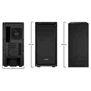 Bodi tiho! Pure Base 600. Oblika: Midi Tower, Tip: PC, Material: ABS sintetika, Jeklo. Podprti faktorji oblike napajalnika: ATX. Vgrajeni ventilatorji (spredaj): 1x 140 mm, Podprti premer sprednjih ventilatorjev: 120.140 mm, Vgrajeni zadnji ventilatorji: 1x 120 mm. Podprte velikosti trdega diska: 2,5, 3,5 palca. Širina: 220 mm Globina: 492 mm Višina: 470 mm