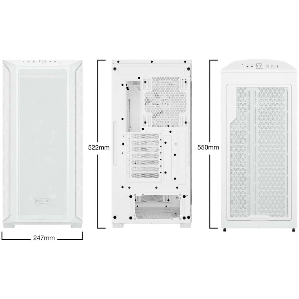 Proizvajalčeva koda: BGW64 EAN koda: 4260052190647 Proizvajalec: BE QUIET! cas_lastnosti: reža za napajalnik spodaj, RGB, stransko okno, USB 3.2 Gen 1, USB 3.2 Gen 2 Type-C, vgradnja pogonov brez orodja, vgrajen kontroler Tip ohišja:: Midi ATX tower Podpora za matične plošče:: Mini-ITX, Micro-ATX, ATX, E-ATX Notranja vgradna mesta 8,89cm (3,5″):: 1 -3 Notranja vgradna mesta 6,35cm (2,5″):: 3 – 7 Število razširitvenih mest:: 7 Priključki:: 1x USB 3.2 Gen2 Type-C
