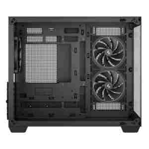 Ohišje je opremljeno z dvema ventilatorjema serije FL z obrnjenimi lopaticami na strani in enim standardnim na zadnji strani, ki skupaj tvorijo horizontalni prezračevalni kanal za učinkovito hlajenje. DeepCoolov edinstveni sistem osvetlitve zagotavlja enakomerno osvetlitev v celotnem ohišju.