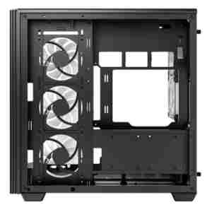 Prostorna notranjost zagotavlja dovolj prostora za komponente, podpira hladilnike procesorja do 160 mm, grafične kartice do 410 mm in ATX napajalnike do 210 mm. Prednja stranica ima 2×USB-A 3.0, USB-C in kombiniran 3.5 mm avdio priključek.