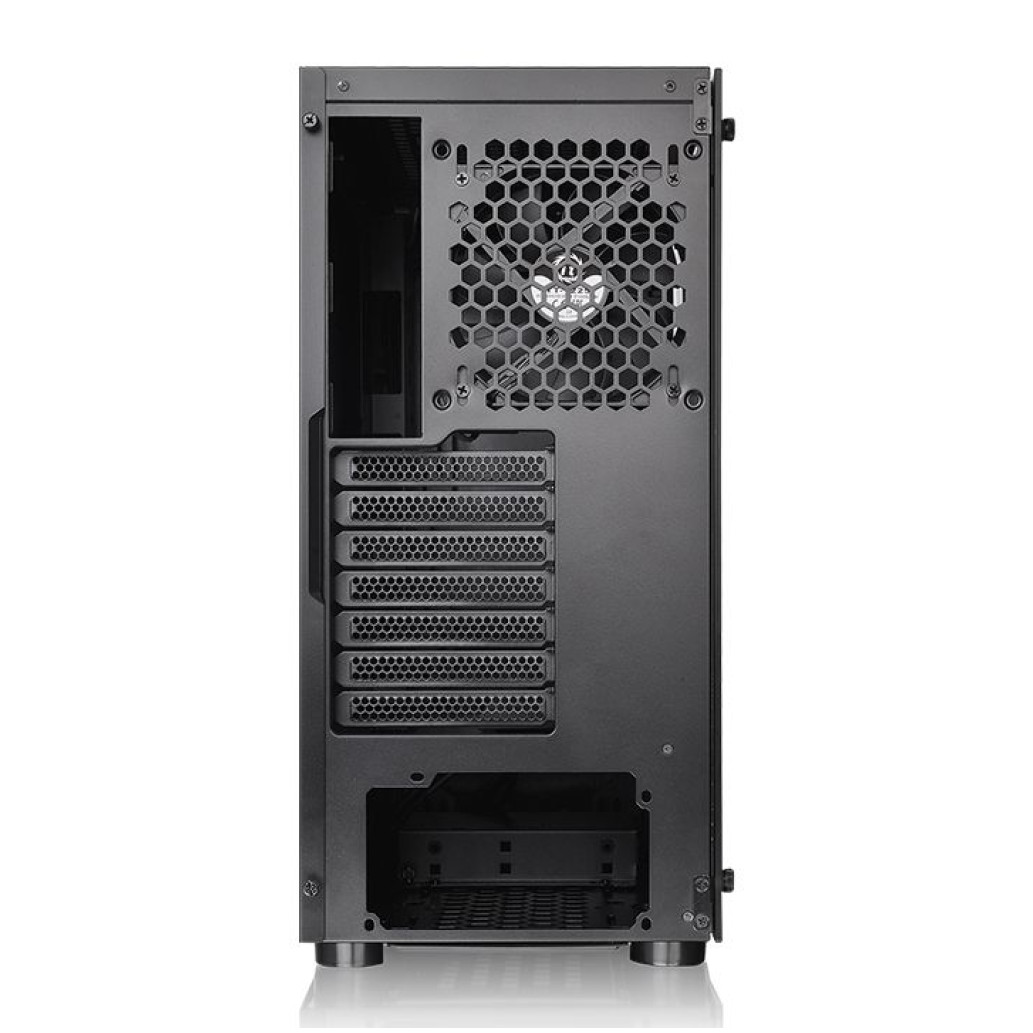 Thermaltake H100 TG. Oblika: Midi Tower, Tip: PC, Material: SPCC, Kaljeno steklo. Podprti faktorji oblike napajalnika: PS2. Podprti premer sprednjih ventilatorjev: 120.140 mm, Vgrajeni zadnji ventilatorji: 1x 120 mm, Podprti premer zadnjih ventilatorjev: 120.140 mm. Podprte velikosti trdega diska: 2,5, 3,5 palca. Širina: 210 mm Globina: 454 mm Višina: 416 mm