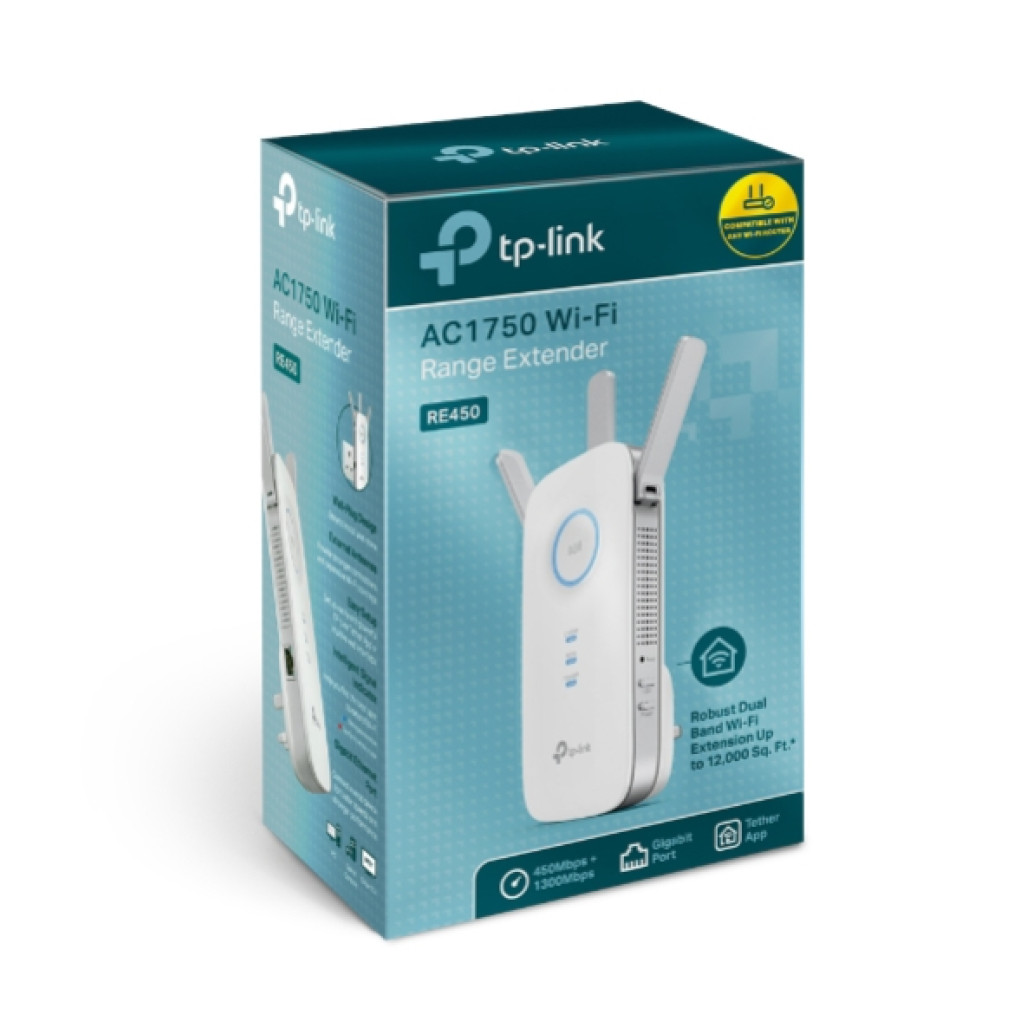 TP-LINK RE450 Range Extender podaljša in izboljša domet vašega brezžičnega omrežja in odstrani mrtve točke. Omogoča Dual Band delovanje z hitrostjo do 1750 Mbps oz. 450Mbps na 2.4GHz frekvenci in 1300 Mbps na 5 GHz frekvenci. S tremi nastavljivimi zunanjimi antenami in indikatorjem, ki pomaga najti optimalno lokacijo, je podaljševanje omrežja zelo enostavno. Podpira vse Wi-Fi standarde, vključno z 802.11ac. S pritiskom na RE gumb enostavno razširite vaše omrežje. Ethernet port (10/100/1000) omogoča priklop ožičenih naprav.