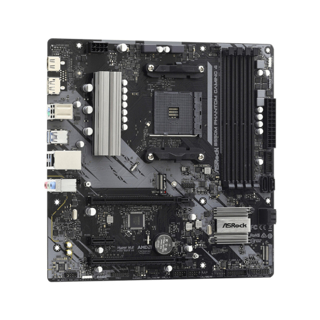 Asrock B550M Phantom Gaming 4. Proizvajalec procesorja: AMD, Podnožje procesorja: Podnožje AM4, Združljivi procesorji: AMD Ryzen 3, AMD Ryzen 5, AMD Ryzen 7, 3. generacija AMD Ryzen 9. Podprt pomnilnik: DDR4-SDRAM, največji pomnilnik RAM: 128 GB, vrsta pomnilnika: DIMM. Podprti vmesniki shranjevalnih pogonov: SATA III, Podprti shranjevalni pogoni: HDD & SSD. Največja ločljivost: 5120 x 2880 slikovnih pik. Vrsta vmesnika Ethernet: Gigabit Ethernet, krmilnik LAN: Realtek RTL8111H.
