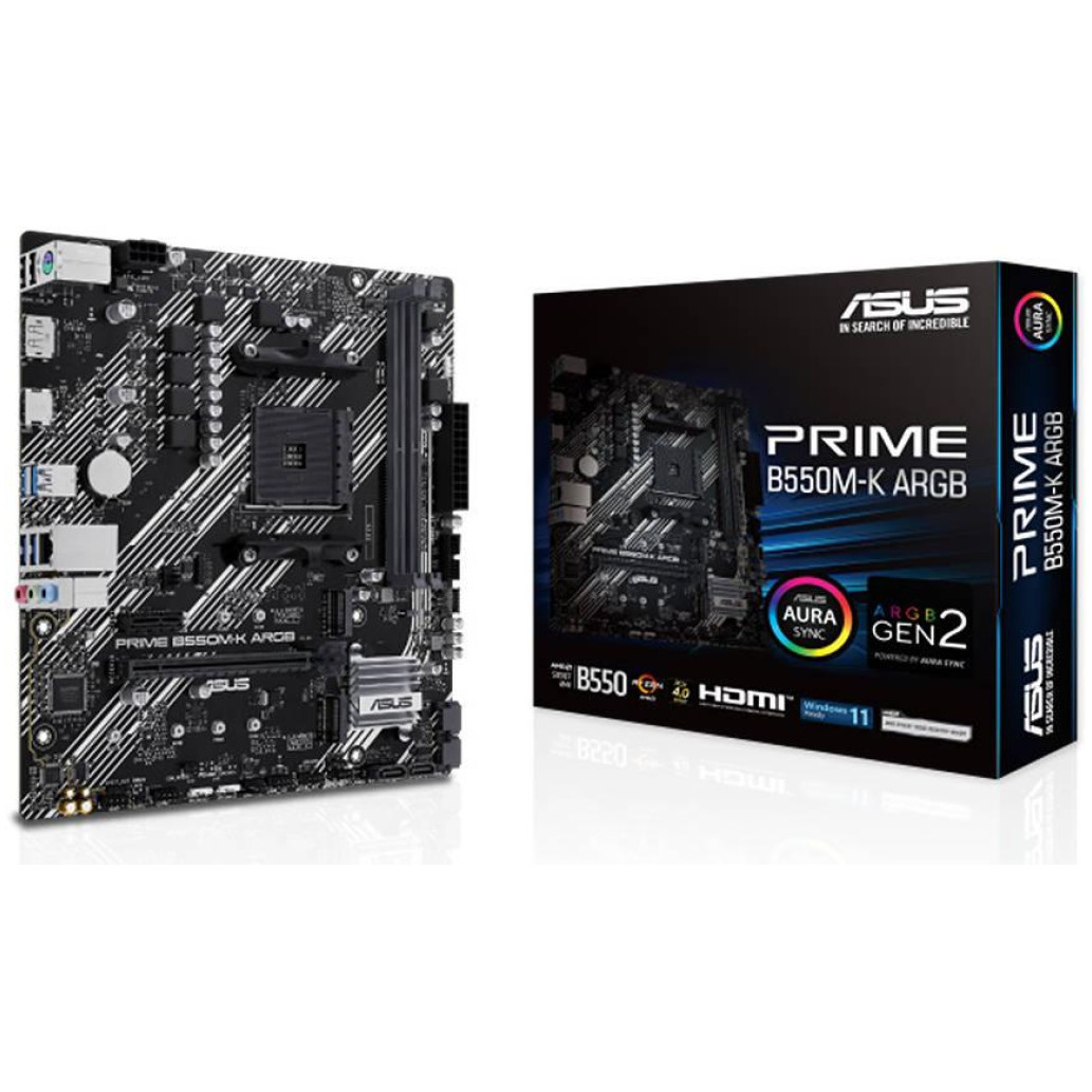 ASUS PRIME B550M-K ARGB AM4 mATX matična plošča – AMD B550 2xDIMM DDR4 2xM.2 4xSATA PCIe 4.0 1Gb Ethernet 1xDisplayPort 1xHDMI with Aura Sync