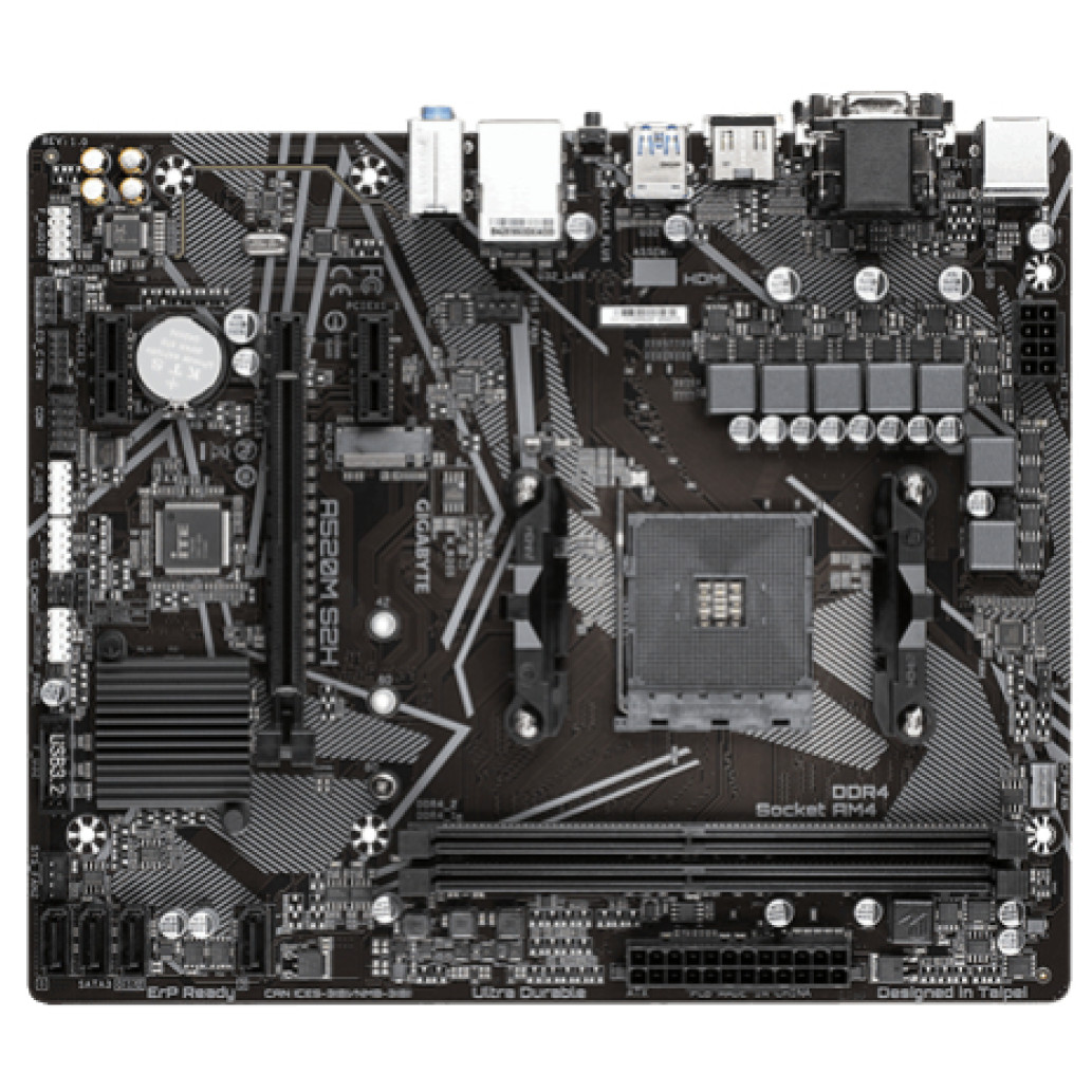 Gigabyte A520M S2H. Proizvajalec procesorja: AMD, vtičnica za procesor: Socket AM4, združljivi procesorji: AMD Ryzen 3 3. Gen. Podprti pomnilnik: DDR4-SDRAM, največja RAM pomnilnik: 64 GB, vrsta pomnilnika: DIMM. Podprti vmesniki pogona za shranjevanje: M.2, PCI Express 3.0, SATA. Komponenta za: PC, Faktor oblike matične plošče: mikro ATX, Družina čipov matične plošče: AMD. Tip BIOS-a: UEFI AMI, velikost pomnilnika BIOS-a: 128 Mbit