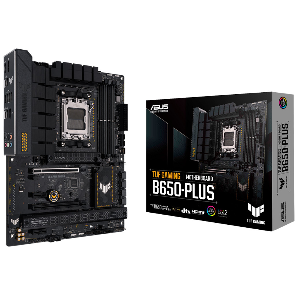 TUF GAMING B650-PLUS je z nadgrajenim napajanjem in obsežnimi možnostmi hlajenja za napajanje najnovejših AMD-jevih procesorjev ter podporo za hitrejši pomnilnik in shranjevanje, odlična podlaga za vašo naslednjo bojno opremo AMD z velikim številom jeder.