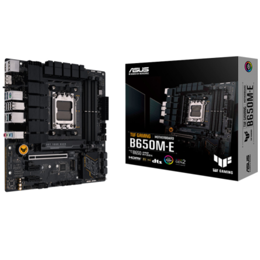 ASUS TUF GAMING B650M-E. Proizvajalec procesorja: AMD, Podnožje procesorja: Podnožje AM5, Združljivi procesorji: AMD Ryzen 5 7. generacije, AMD Ryzen 7 7. generacije, AMD Ryzen 9 7. generacije. Podprt pomnilnik: DDR5-SDRAM, največ RAM: 128 GB, vrsta pomnilnika: DIMM. Podprti vmesniki pomnilniških pogonov: M.2, SATA III, Podprti pogoni za shranjevanje: HDD & SSD, raven RAID: 0, 1, 10. Vrsta vmesnika Ethernet: 2.5 Gigabit Ethernet. Komponenta za: PC, Faktor oblike matične plošče: mikro ATX, Družina nabora čipov matične plošče: AMD.